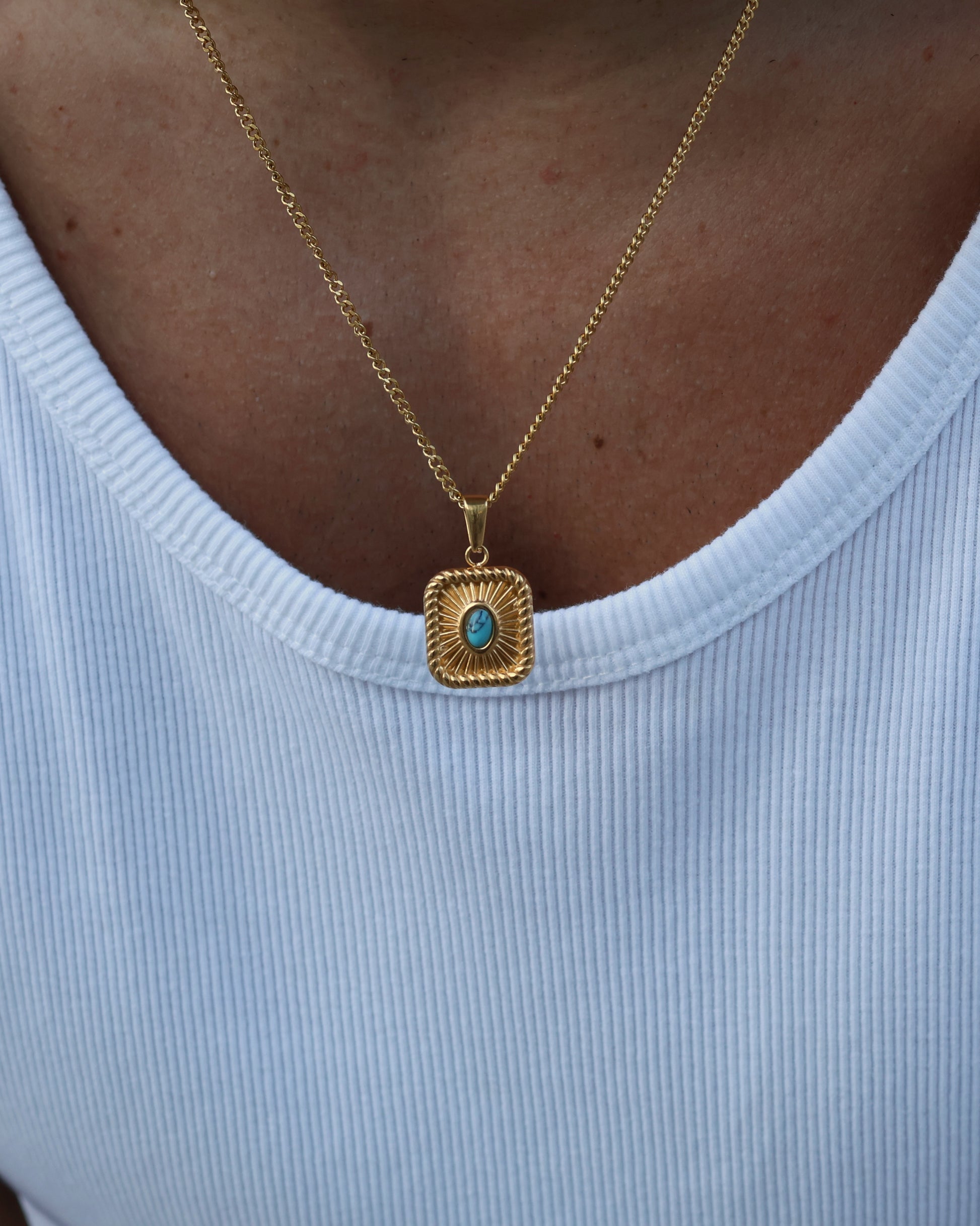 A sleek gold chain meets a deep blue gemstone in this elegant necklace. The subtle contrast between the warm metal and the vibrant stone creates a refined, understated look. Perfect to wear alone or layered for a personal touch, this piece captures Sombra’s signature blend of simplicity and quiet sophistication.