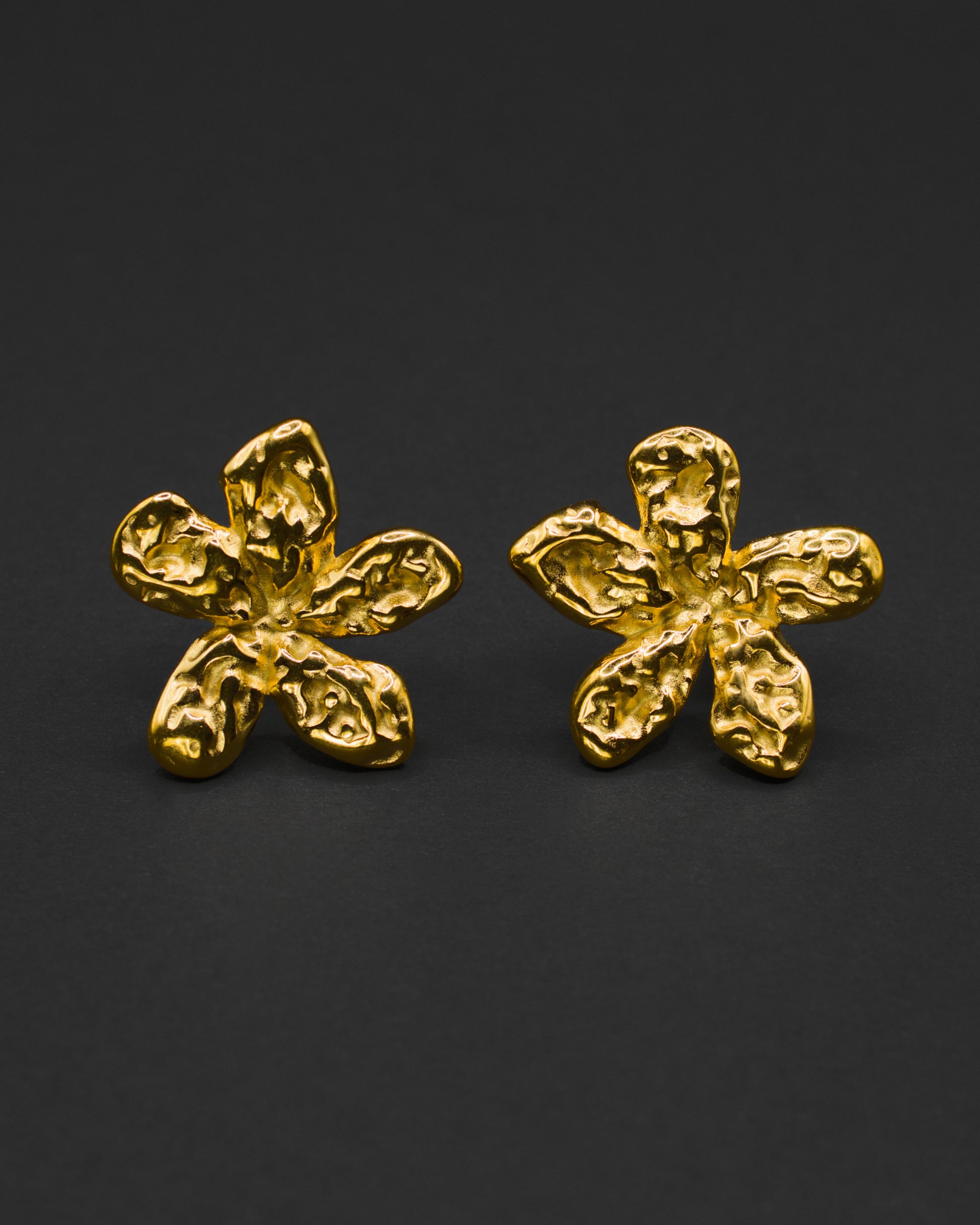 These statement studs feature an organic, flower-inspired design with a distinctive, raw elegance. Their unique, irregular surface captures and reflects light in a subtle way, ensuring each piece is one of a kind. A modern take on a classic shape, they are the perfect accessory for a refined look.